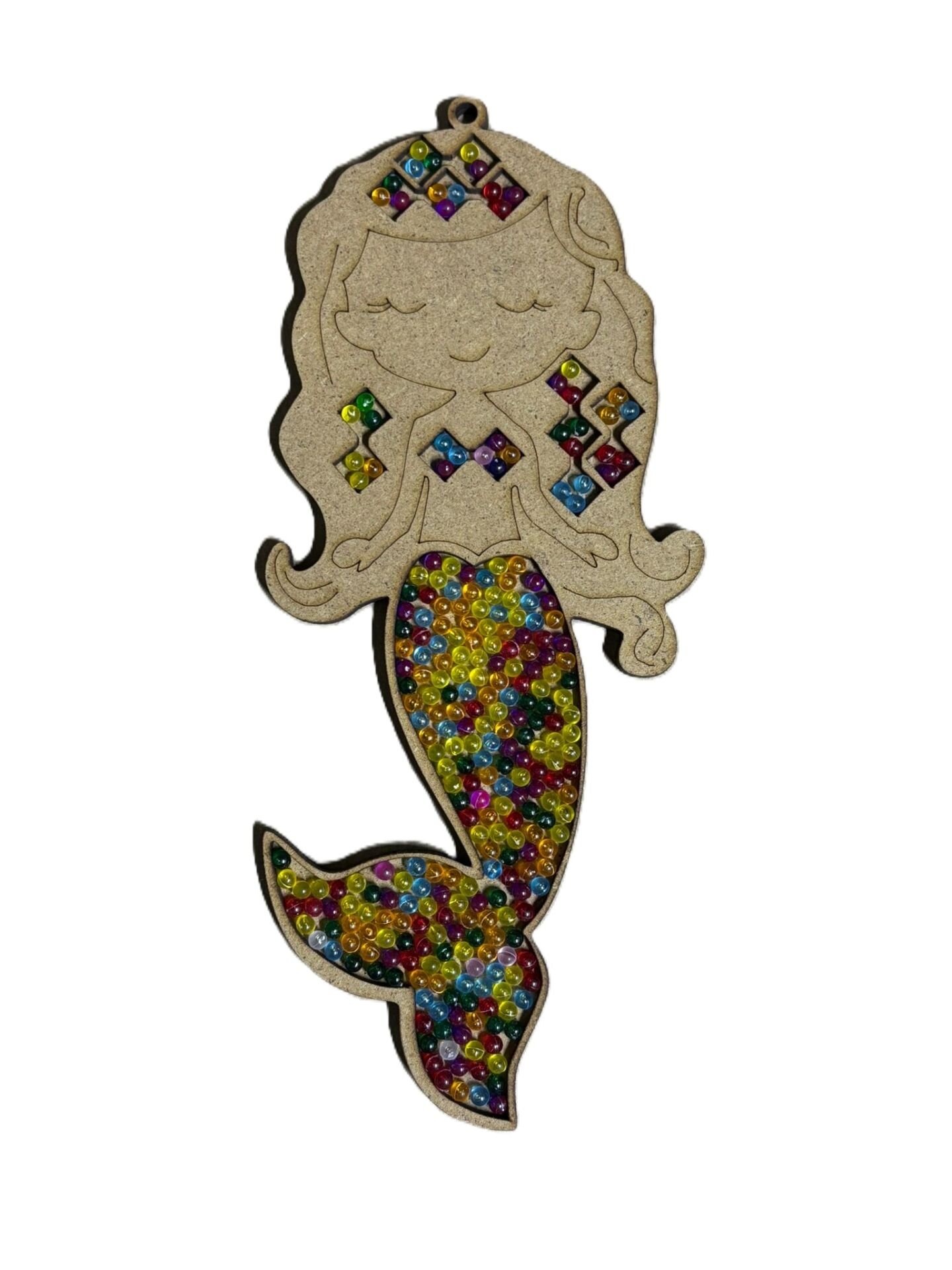 - Çocuklar İçin Ahşap Boyama Deniz Kızı Boncuk Süsleme