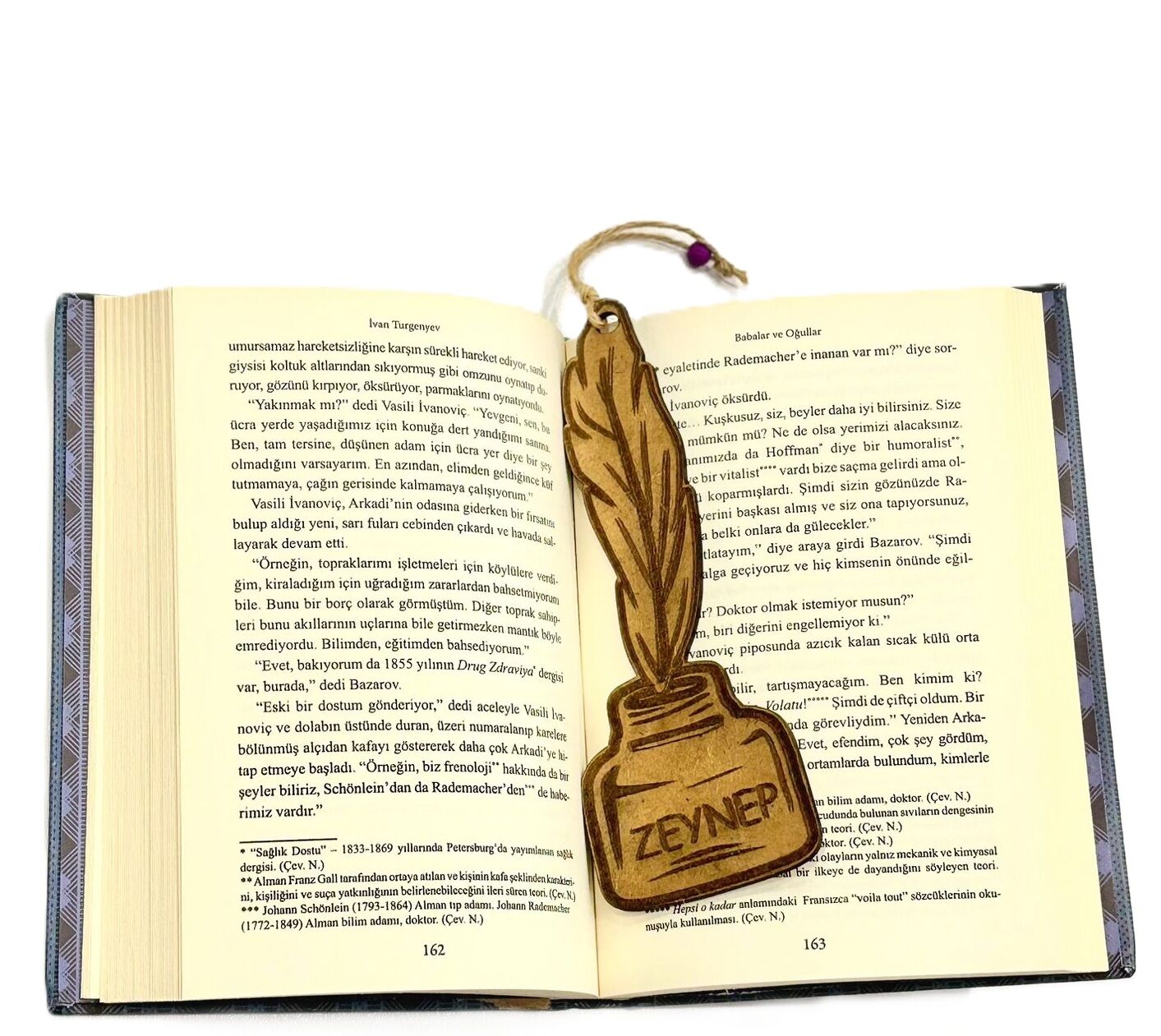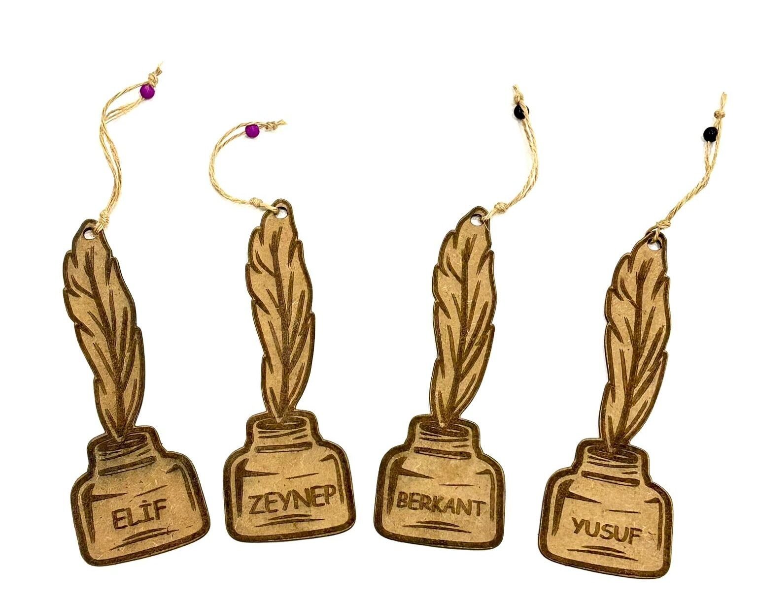 İsme Özel Hediyelik Ahşap Kuş Tüğü Baskılı Kitap Ayracı