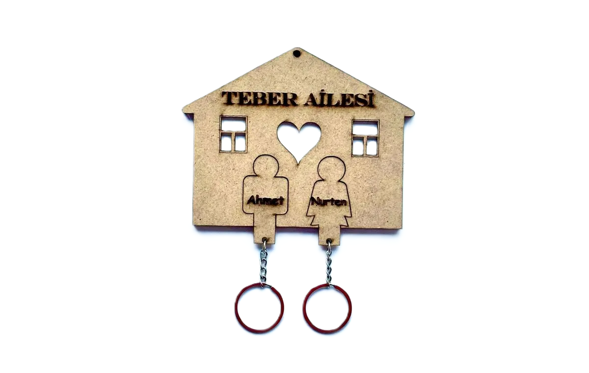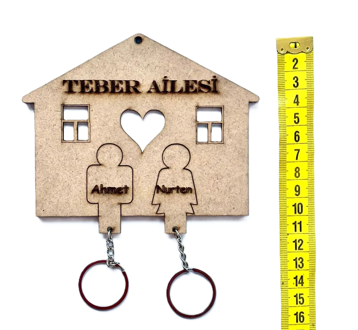 Tamamen el yapımı olan bu anahtarlık, kaliteli ahşap malzemeden üretilmiştir ve üzerine sevgilinizin isminin veya size özel bir mesajın kazınmasına olanak sağlar.