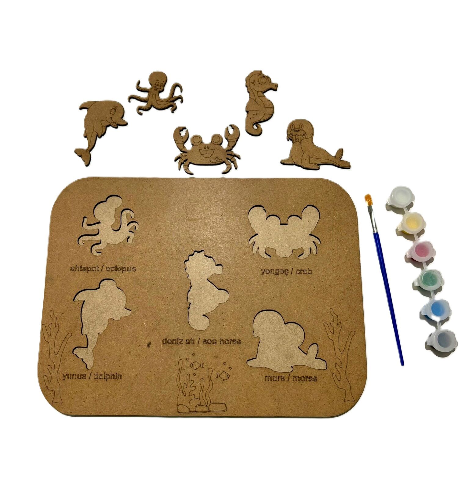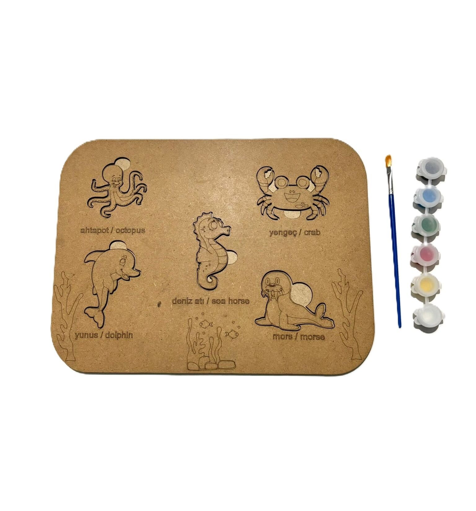 - Ürün Adı: Çocuklar İçin Ahşap Boyama Deniz Canlıları Okul Öncesi