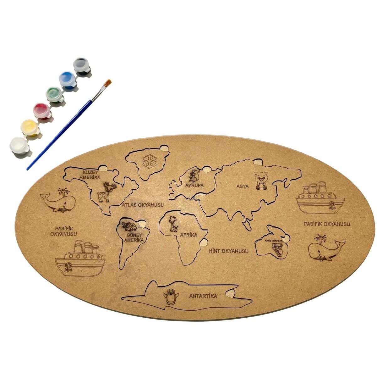 Çocuklar İçin Ahşap Boyama Kıtalar Okul Öncesi Etkinlik