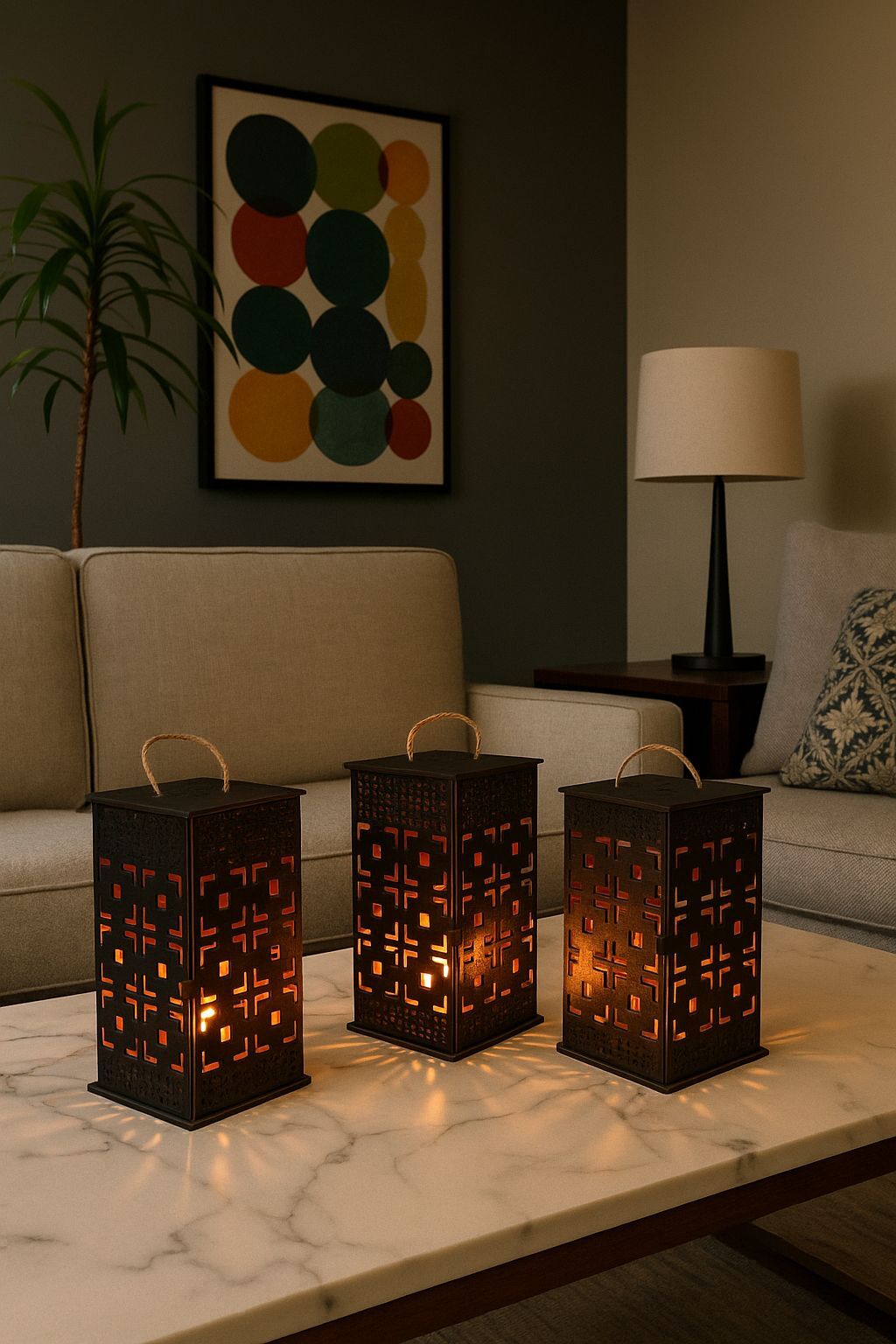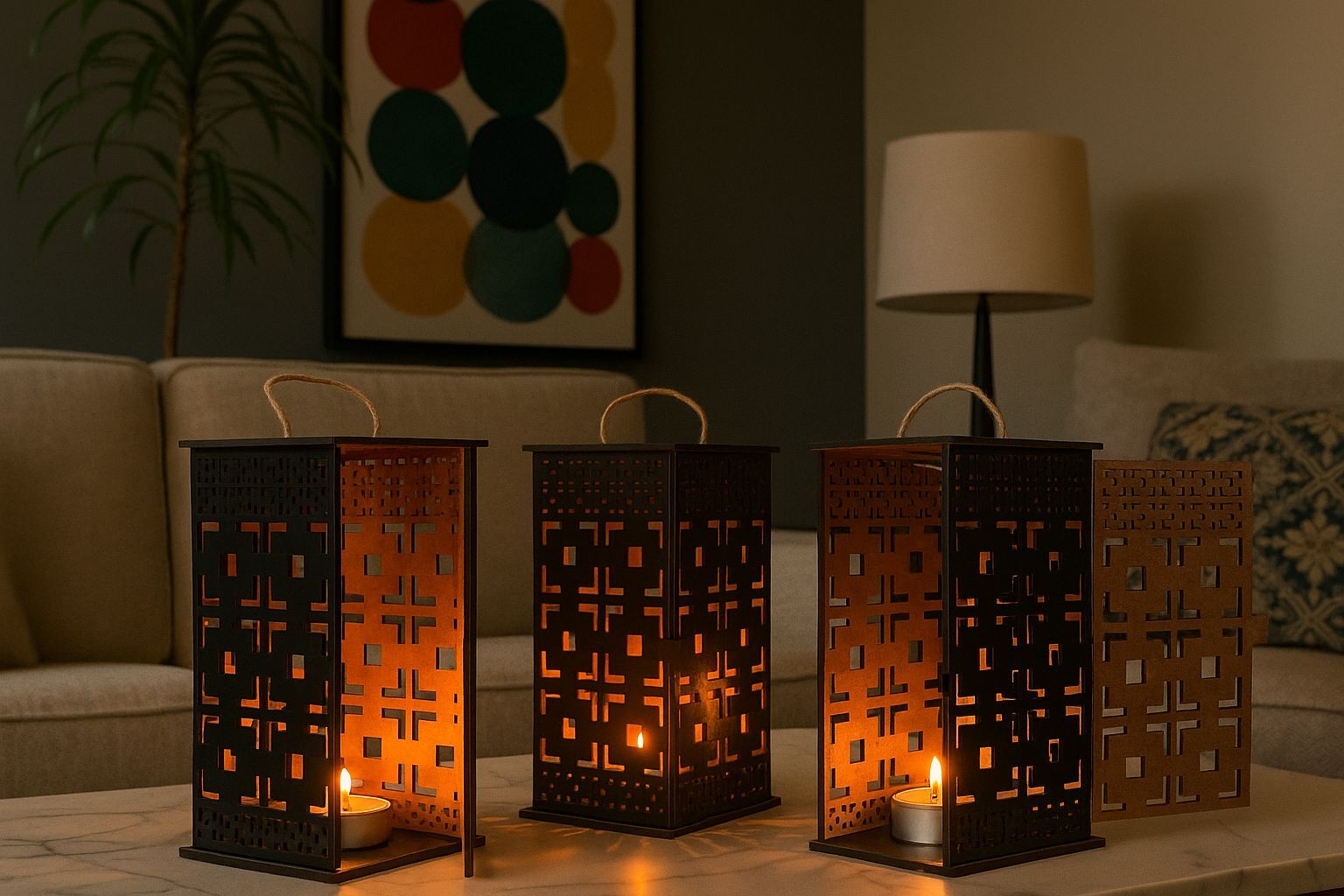 Mumluk 3'lü Set Şamdan Fener Kandil