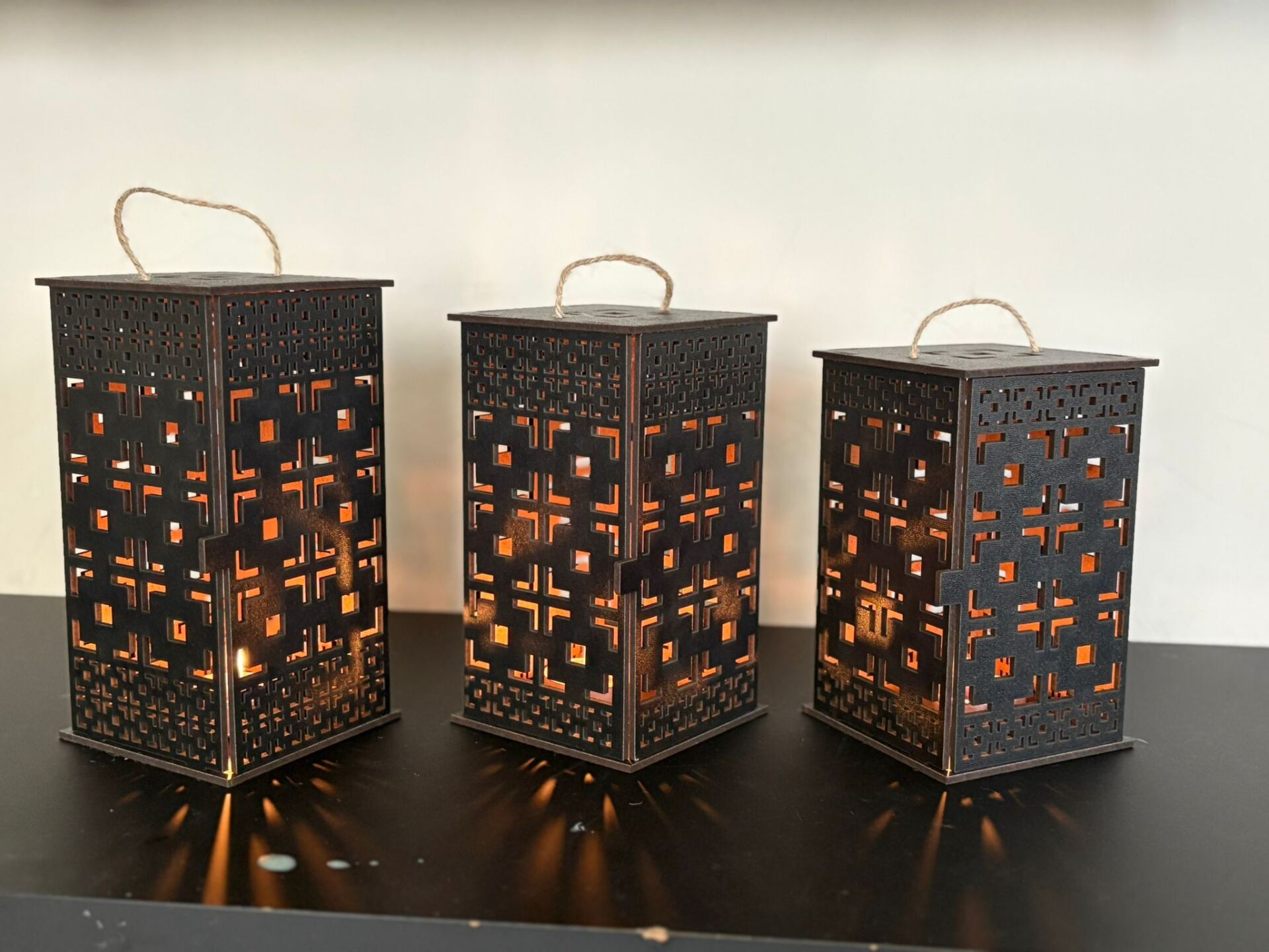 3mm siyah mdf den üretilmiş olan mumluk setimiz 19-17-15 cm yüksekliğinde 8 cm derinliğinde ve genişliğindedir.